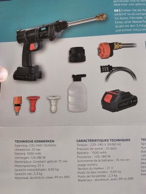 • Verwijderbare 21V-batterij (incl Batterijlader) /